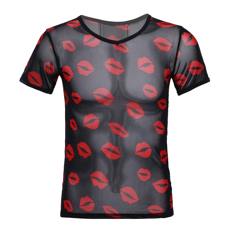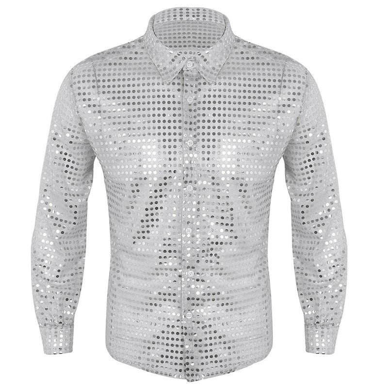 Men’s clubwear shirt tops, see through mesh with sequins design.