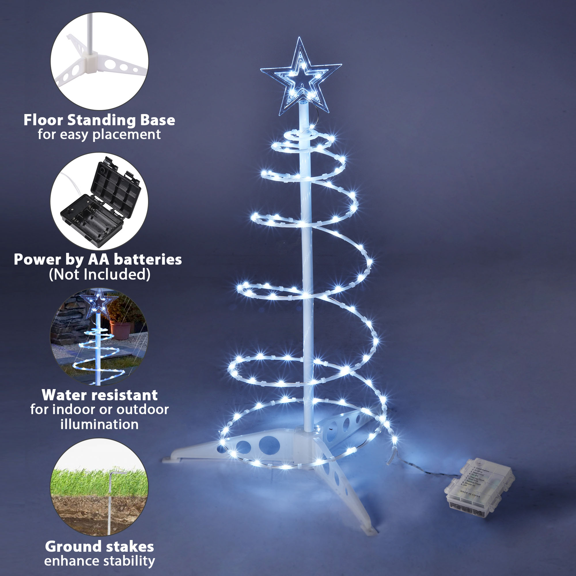 - Christmas Decoration - 2 ft Spiral LED Lights with Star Finial present the shape of Christmas tree for festival decoration; Total 79 pcs LEDs, shining and twinkling to turn your home into winter wonderland; Provides impressive lighting effect for decor to attract attentions