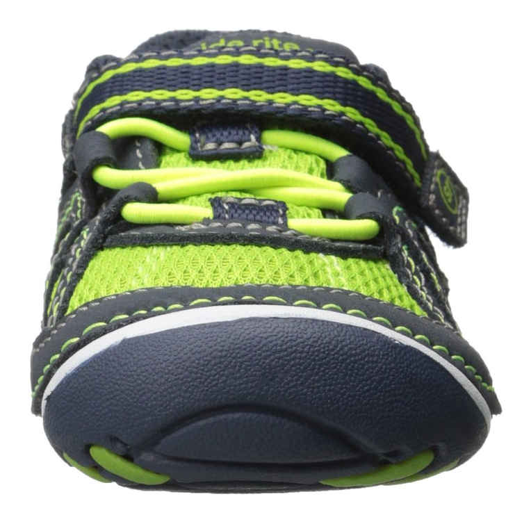 Rounded edges to decrease stumbles and falls * Deep flex grooves enables babies natural movement * Mesh lining with antimicrobial treatment reduces odor * Alternative closure with H & L for easy on/off and adjust-ability * Memory foam insole for enhanced comfort. Infant/Toddler sizing.
