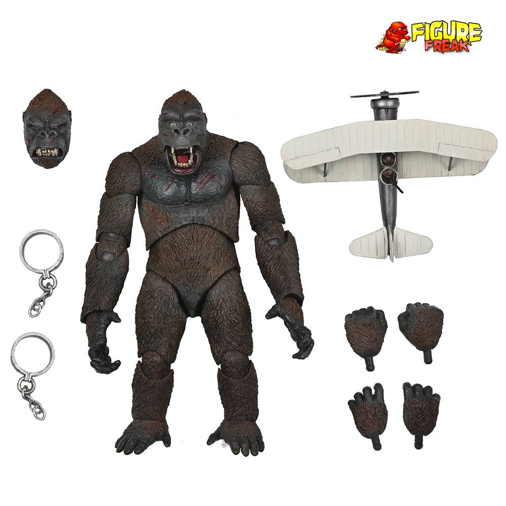 From NECA. King Kong has made his way to the concrete jungle and now he's claiming it as his own! Standing 8" tall with super detailed hair and battle wounds across the body and head sculpts, this massive figure has over 30 points of articulation. The figure includes two interchangeable heads(one with jaw articulation), multiple interchangeable hands, a biplane accessory! Window box packaging with opening 5th panel front cover.