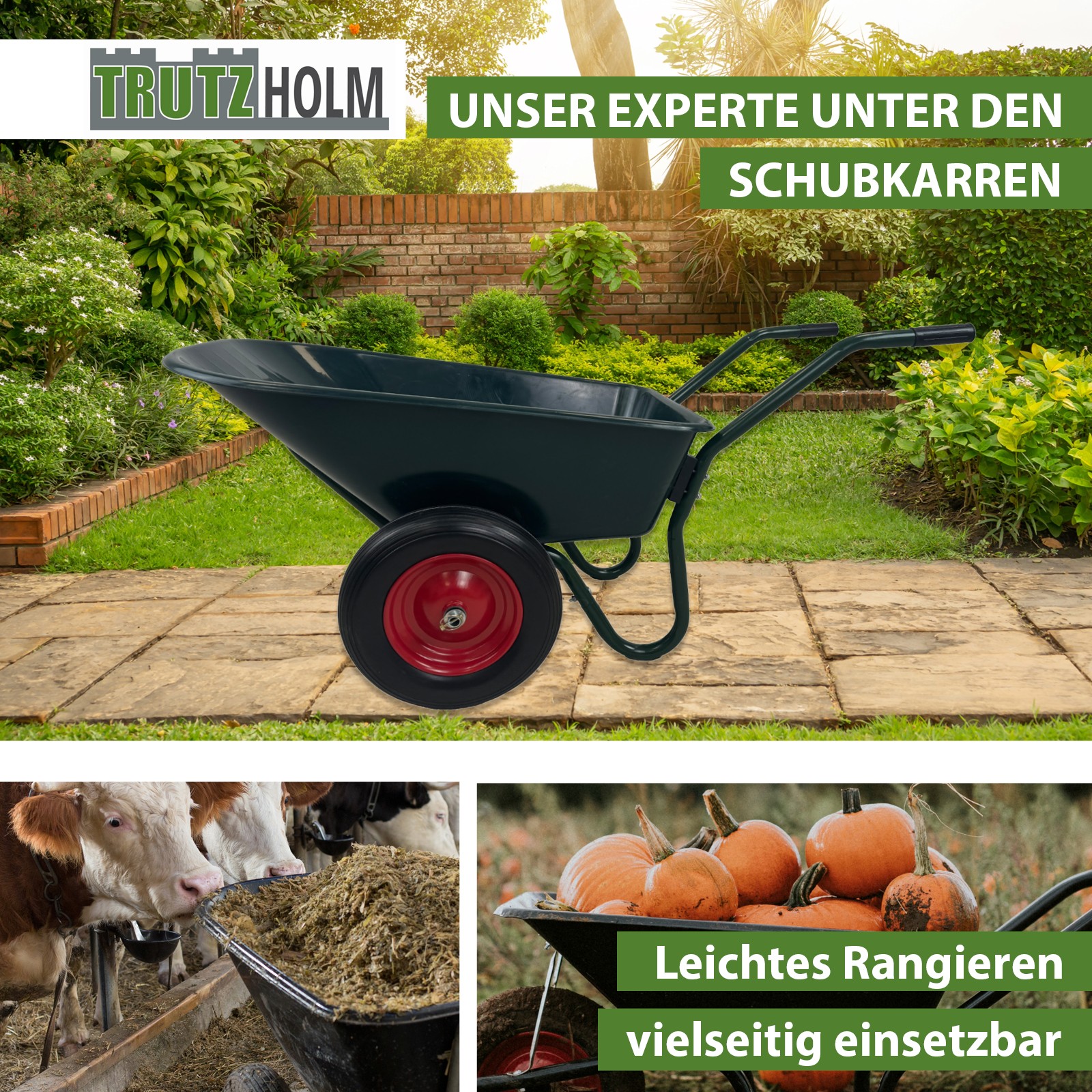 Diese Schubkarre ist perfekt geeignet für den Transport von Erde, Sand, Laub, Holz, Bauschutt uvm.