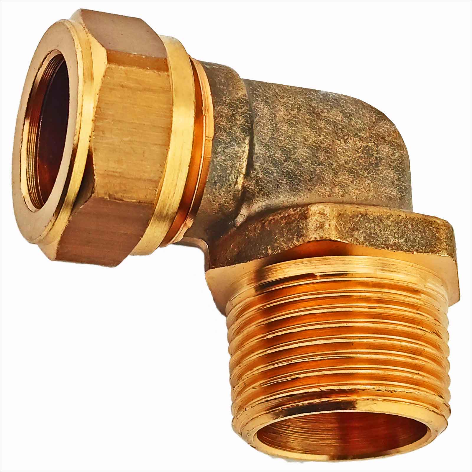 Schraub-Fitting für Kupferrohr > Übergangswinkel 90 Grad mit Außengewinde mit Kragen (i-AG)