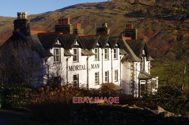 PHOTO THE MORTAL MAN TROUTBECK THIS WELL-KNOWN LAKELAND INN CAN TRACE ITS HISTORY BACK TO AN ALE HOUSE THAT STOOD HERE IN 1689. IT WAS ORIGINALLY KNOWN AS THE WHITE HOUSE BUT HAD THE NICK-NAME 'MORTAL MAN' FROM THE RHYME ABOUT SALLY BIRKETT'S ALE WHICH NOW APPEARS ON THE INN SIGN. THE BUILDING ENJOYS A SPECTACULAR VIEW DOWN THE VALLEY. 2018 COPYRIGHT (Photograph and text in Extra Info) STEPHEN MCKAYPHOTO PAPER THICKNESS NORMAL PHOTOGRAPH THICKNESS