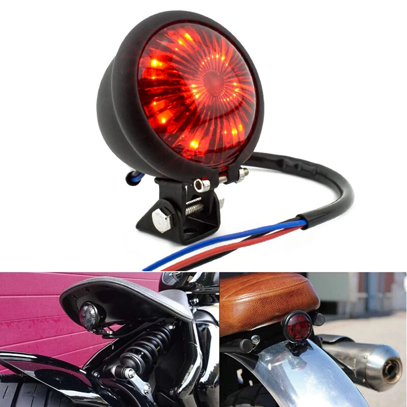 Round Motorcycle 12V LED Rear Brake Stop Tail Light For Harley Cafe Racer Bobber