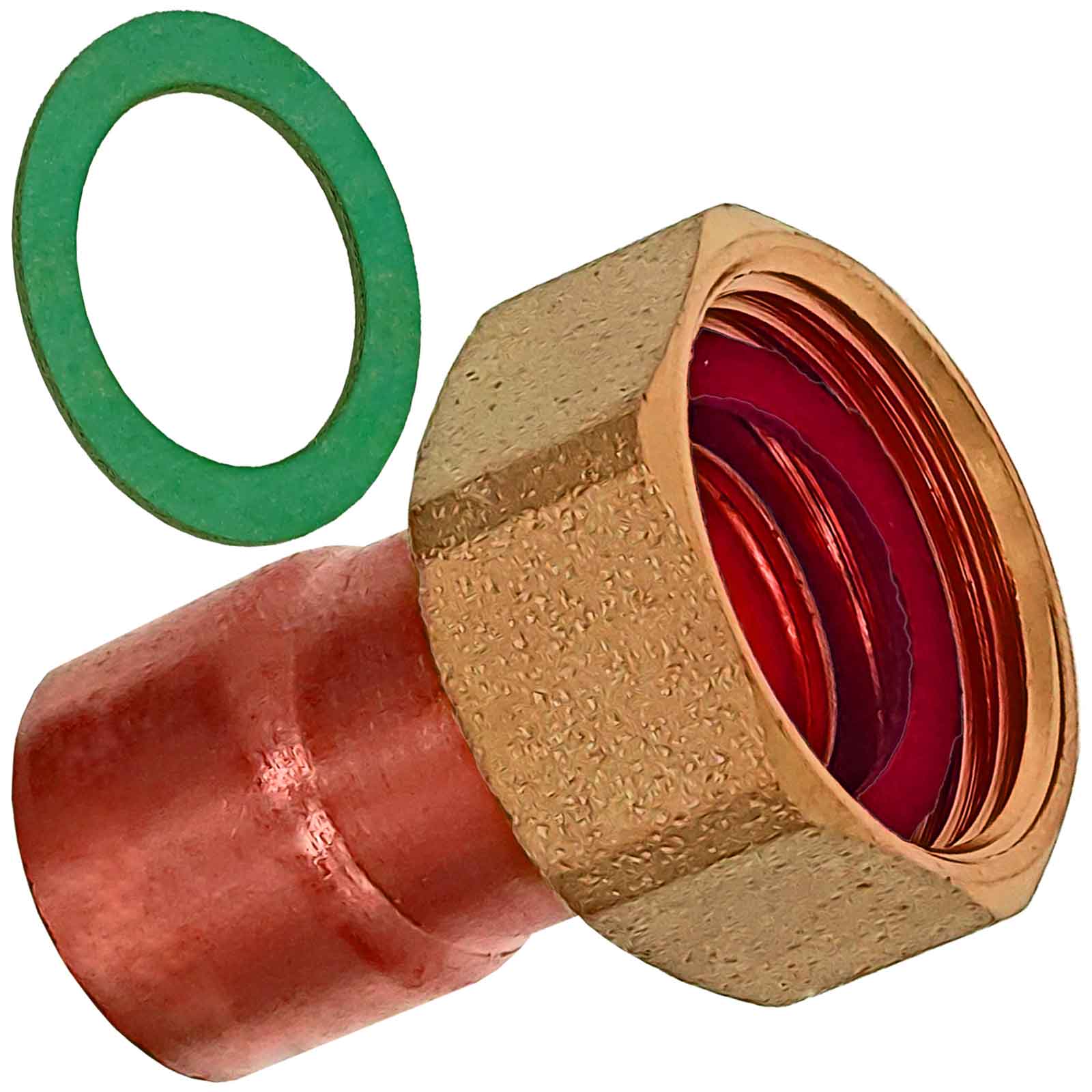 - Kupfer Lötfitting Hahnanschluss mit Überwurfmutter i-IG mit Dichtung