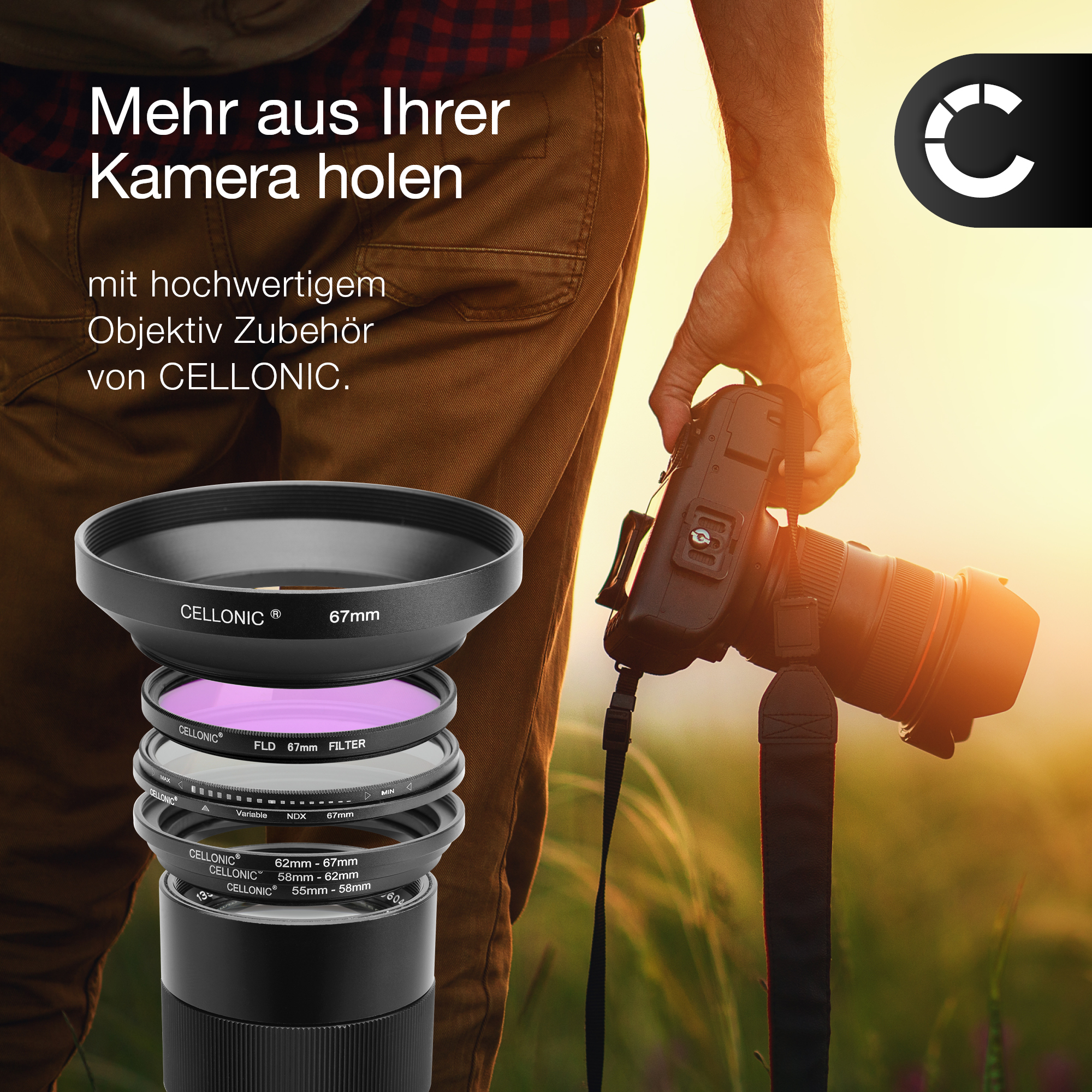 ✔ Kann mit Objektivdeckeln, Schutzkappen und Effekt-Filtern kombiniert werden