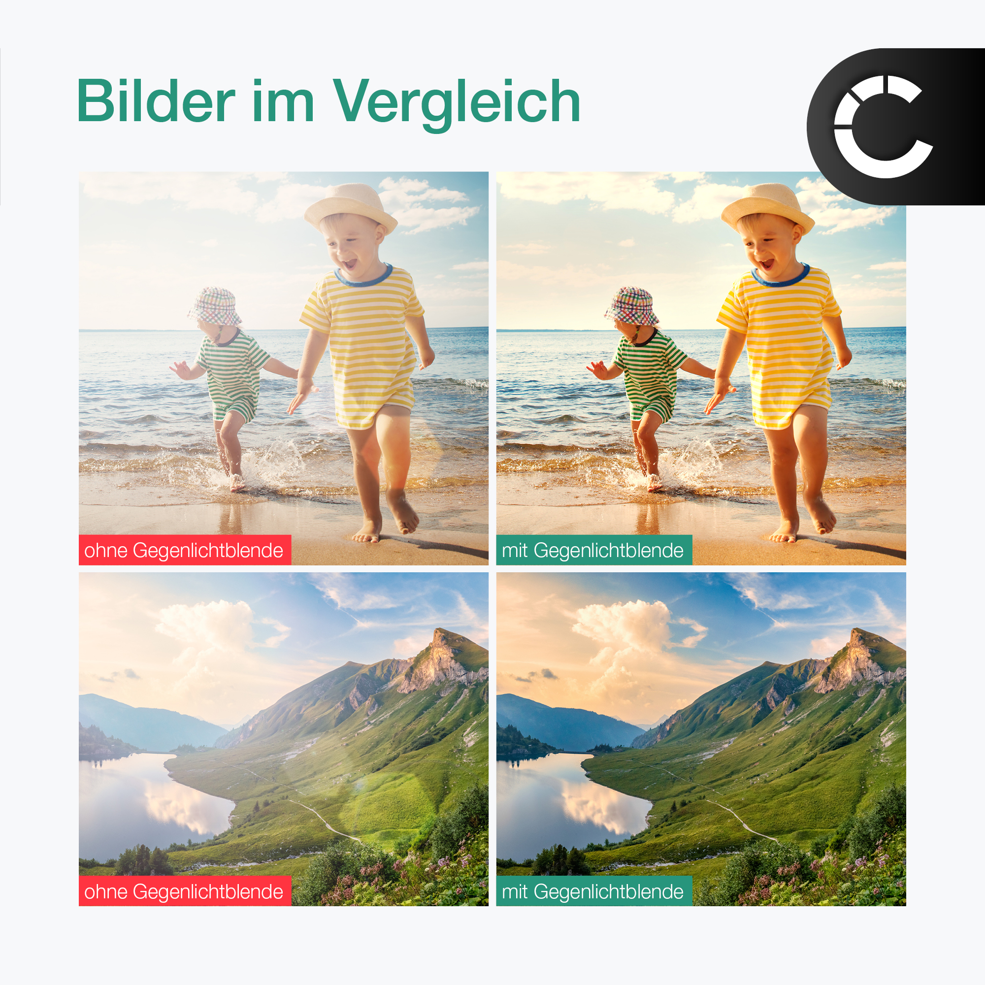 Gegenlicht, Blendflecken und Lichtreflexe waschen Kontraste und Farbbrillanz aus dem Foto oder überdecken wichtige Details Ihrer Aufnahmen? Diese Streulichtblende (auch Störlichtblende, Seitenlichtblende oder Sun Cover) verbessert die Bildqualität, erhöht die Kontrastwerte, verstärkt die Farben und erhöht somit die Detailtiefe Ihrer Aufnahmen.