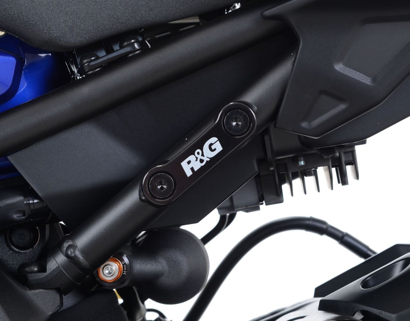 Once you have removed the pillion footrests, fill the void left behind and cover those otherwise exposed holes in the sub-frame with an R&G blanking plate.