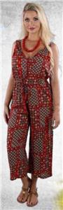 Artsy clothing for creative people who aren't afraid to show a little color! 100% Rayon funky print romper overalls with drawstring at waist for just the right fit. The model is just to show how the item fits, but the pattern in the separate photos are the ones you will receive. Check the measurements below.