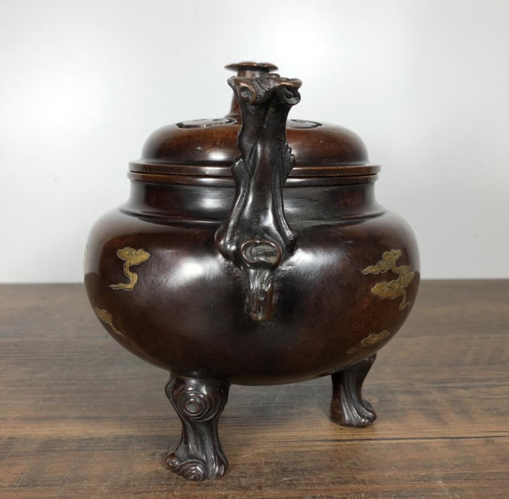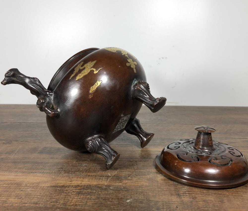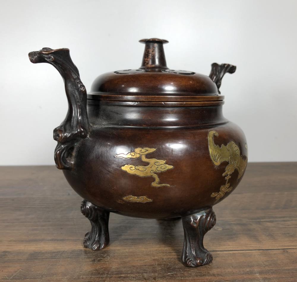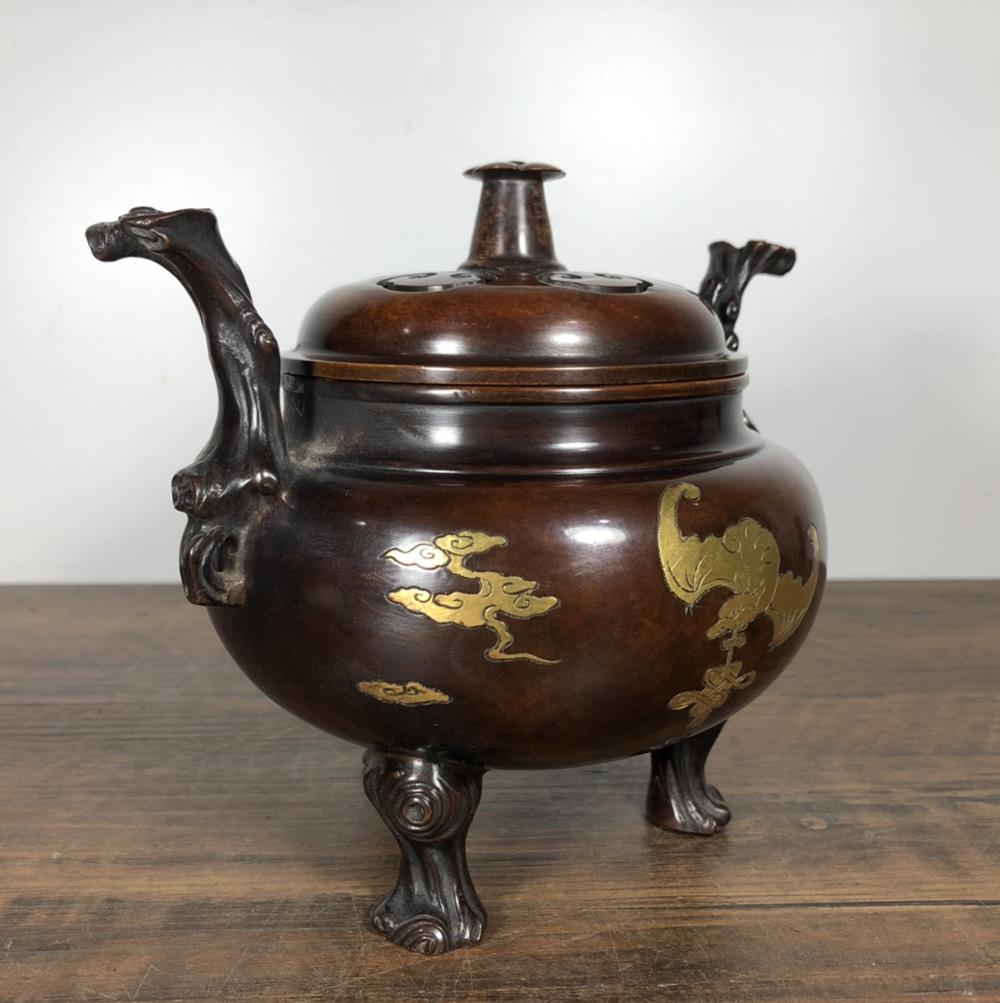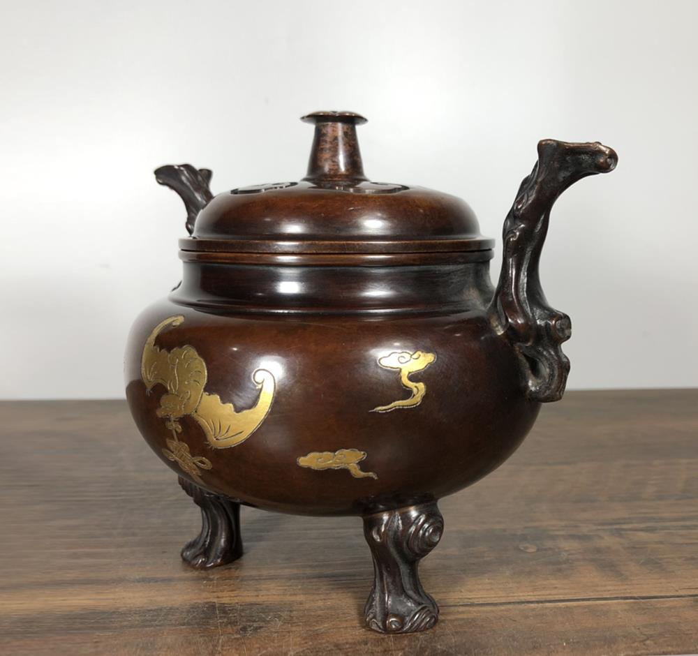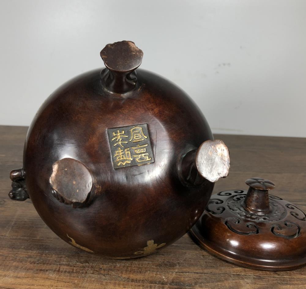 A very fine Chinese copper incense burner. It is carved with bat, With Xuande marked, Will be a nice collection.
