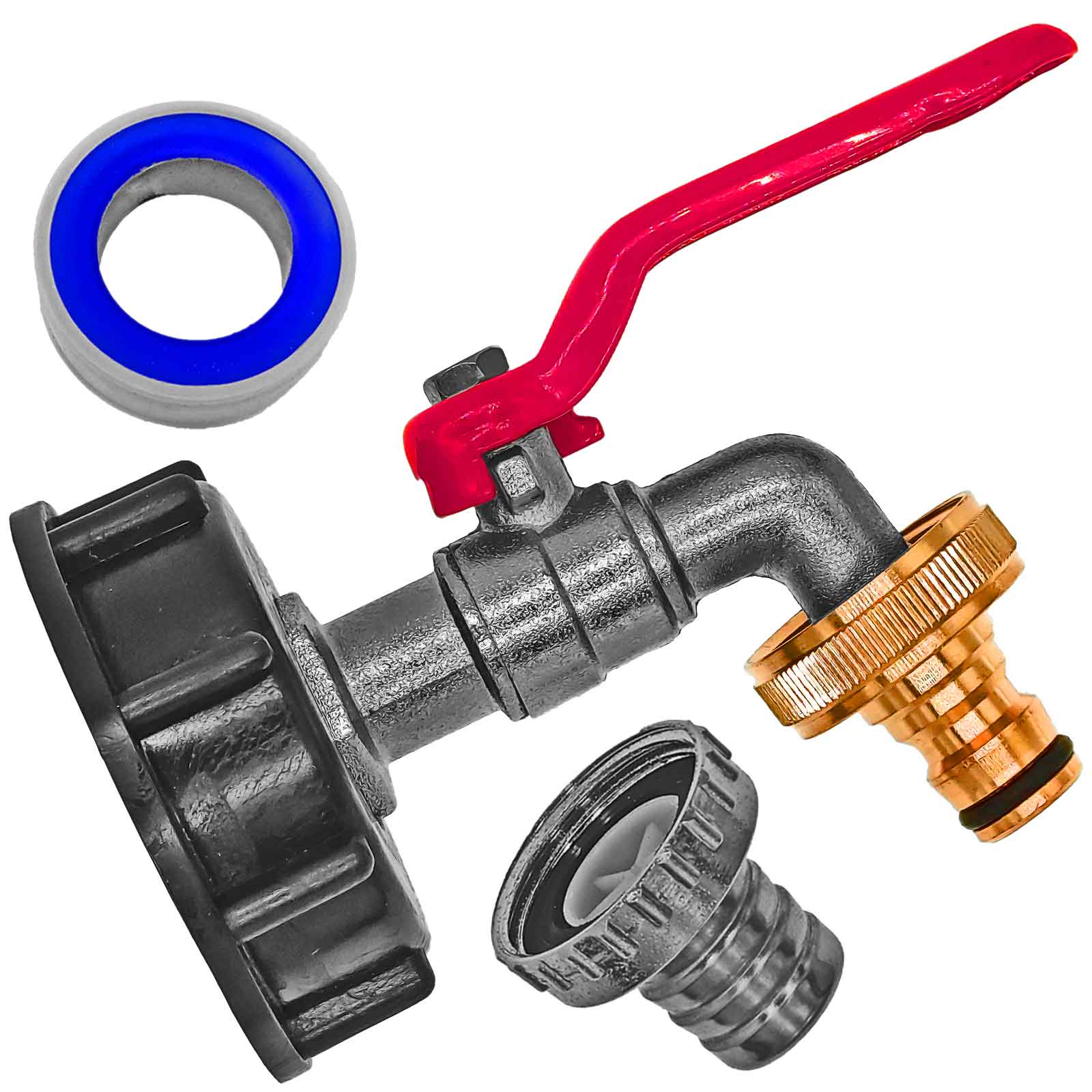 - Lieferumfang: IBC-Container Adapter + 3/4 Zoll Auslaufhahn + Stecker aus Messing + 3/4 Zoll Schlauchtülle aus Metall + Gratis Teflonband zum Abdichten
