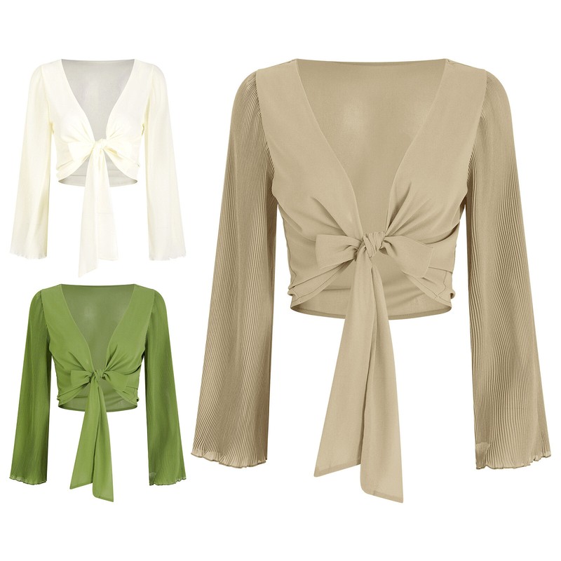 Chiffon bolero shrug for women, open front design, ruched details, long sleeve can cover your arms and avoid direct sunlight.