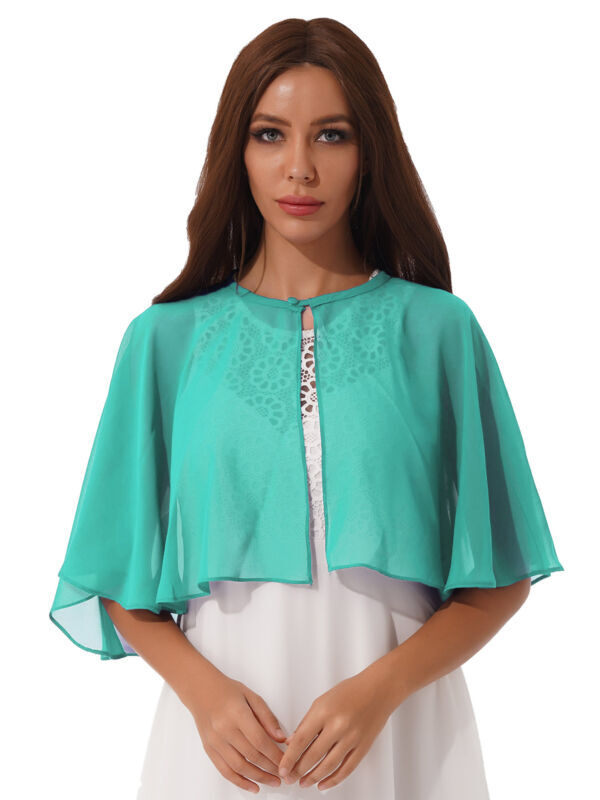 Women Casual One Button Sheer Chiffon Bolero Shawl Shrugs Cape Wraps Cover Ups.