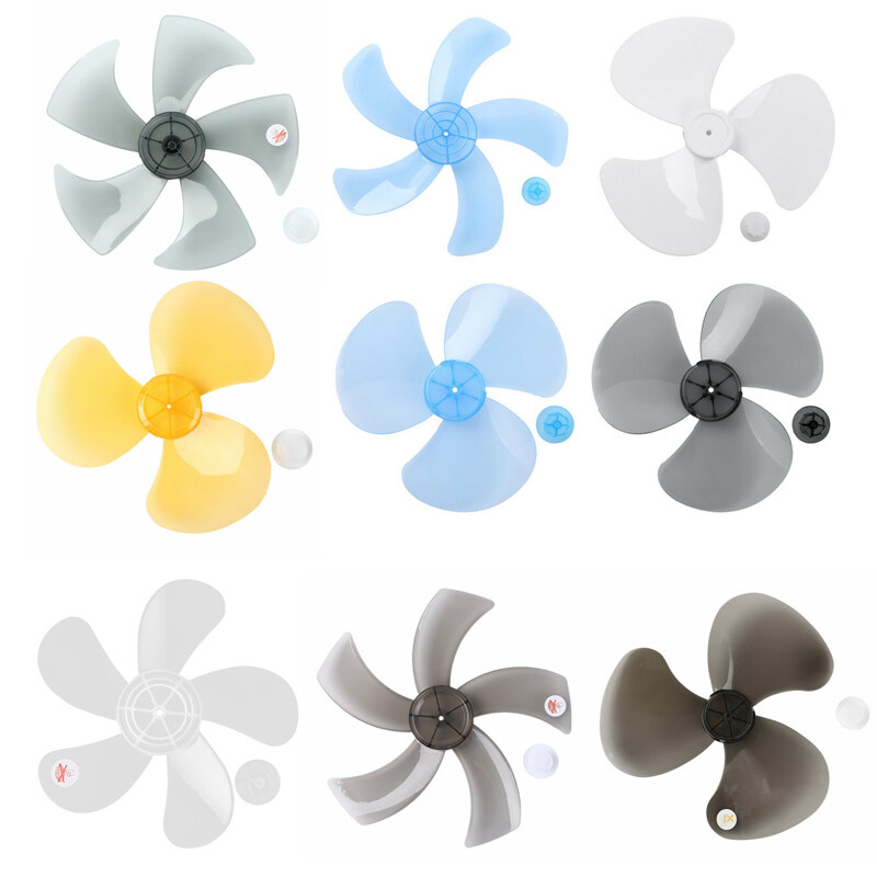 Universal plastic silence fan blade 5 leaves with nut cover for household standing pedestal fan table fanner fan accessories.