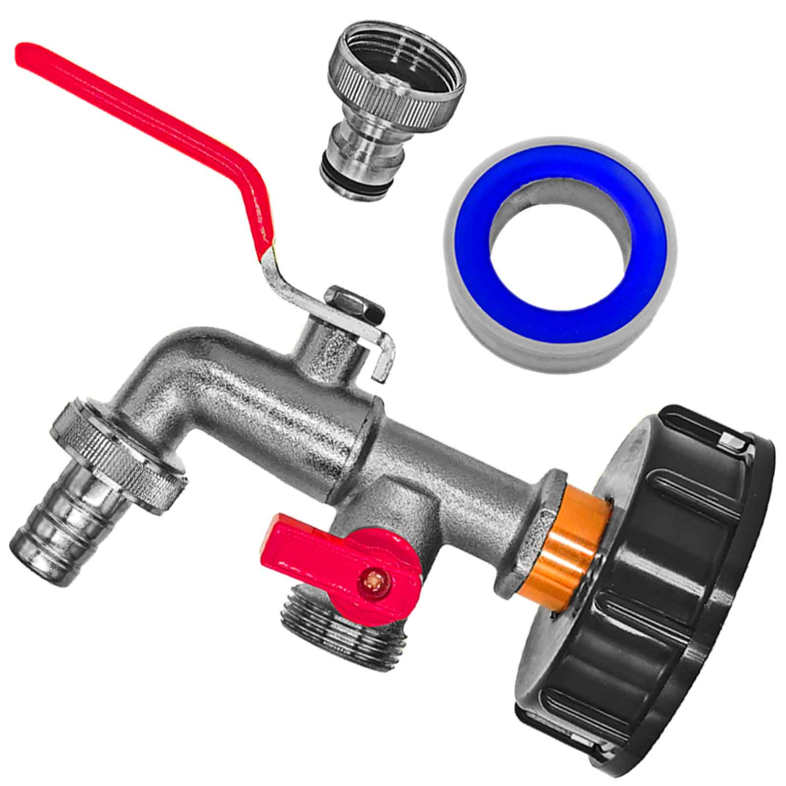 1/2 Zoll Auslaufhahn IBC Tank Deckel Adapter S60 x 6mm 2 Zoll Kappe Wasserhahn 1000 Liter