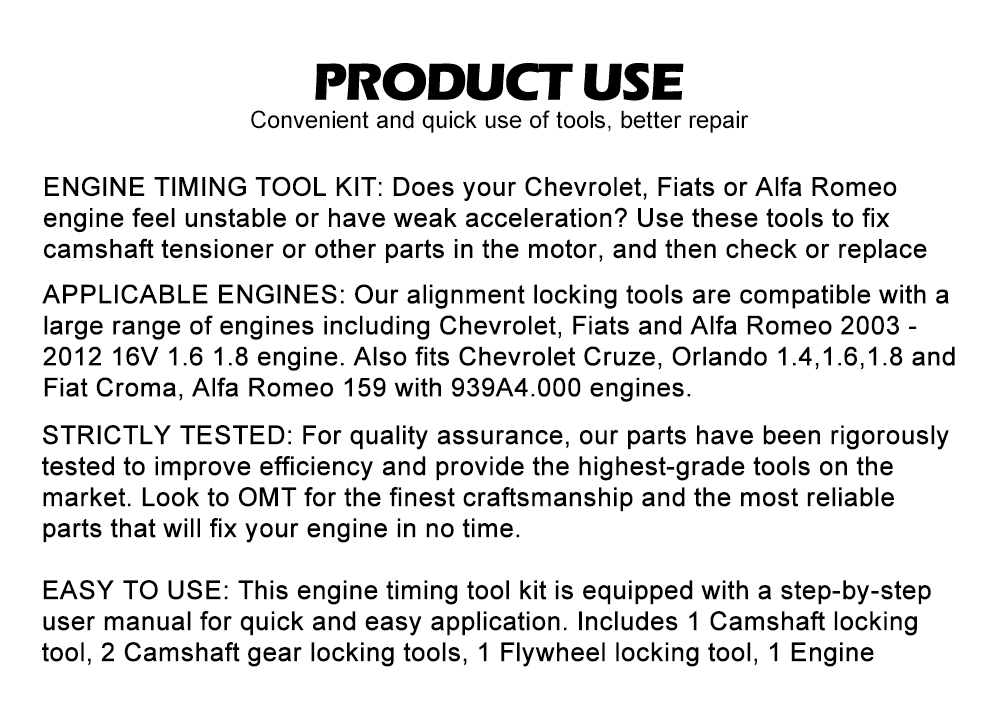 Turbo Engine Timing Tool Kit for Chevy Vauxhall Opel Cruze 1.0 1.2 1.4 Durable