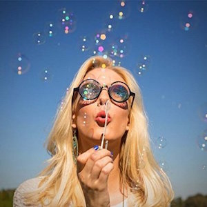 Kaleidoscope Glasses bend light through a series of faceted lenses that create duplicates of light waves. This effect is similar to that of a “bug eye” or repeating pattern. Some are infused with rainbow coloring and faceted in different ways to create remarkable visual effects and colors. These glasses are a phenomenal experience and surely a level above diffraction in intensity.
