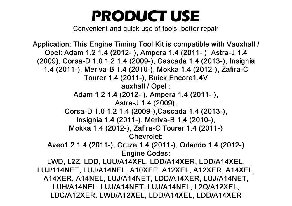 Turbo Engine Timing Tool Kit for Chevy Vauxhall Opel Cruze 1.0 1.2 1.4 Durable