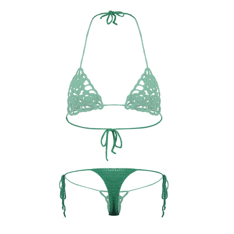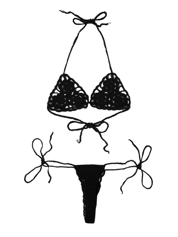 Women Floral Handmade Crochet Lingerie Suit Hollow Out Bikini Set Beach Two-Piece Micro Swimsuit.