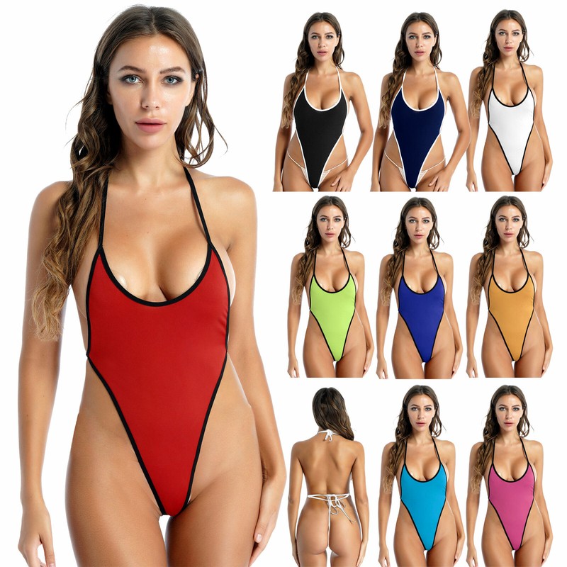 Bikini set include halter neck lace-up bra and g-string, shows all of the beauty off your body.