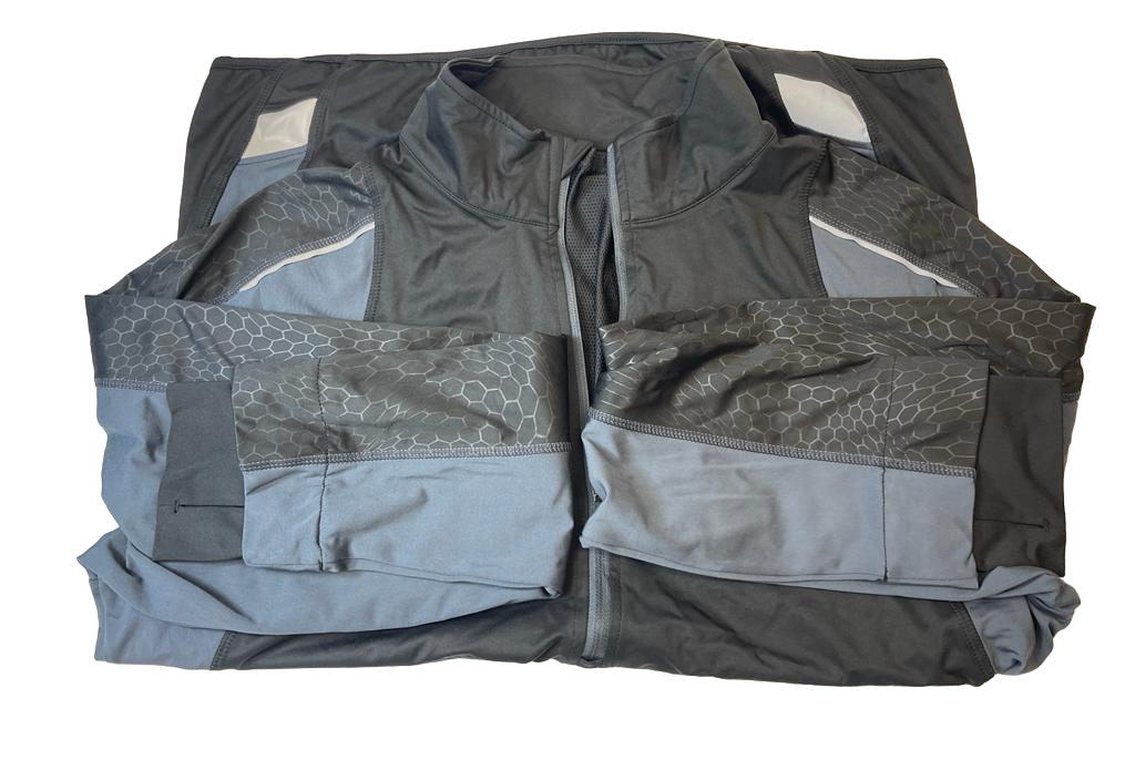 Run light 1/2 zip jacket has a run light laminated fabric with a mesh gusset and a laminated panel