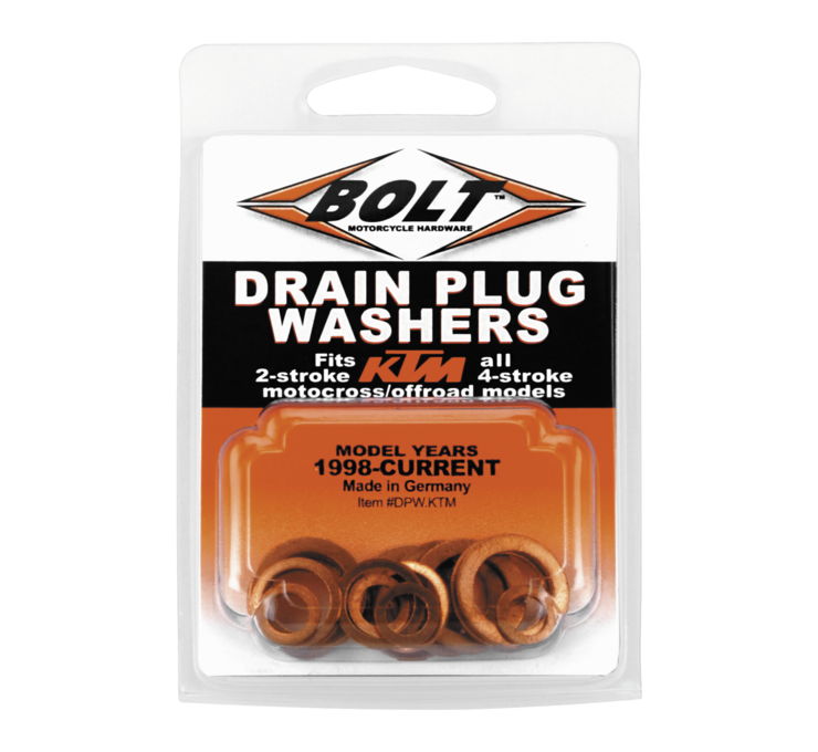 This KTM copper drain plug washer fits all KTM 2-Stroke and 4-Stroke offroad motorcycles.--- Please Confirm Fitment of Your Bike or Vehicle Before Purchasing ---