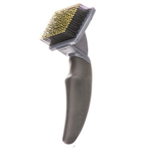 The Grip Soft Cat Brush combines a slicker brush and a pin brush in this new design for daily grooming. The Cat Brush has the standard square shape and angled pins of a slicker with the soft rounded tips of a pin. This gentle brush is great at removing shedding fur and preventing hairballs. The angled pins remove the hair while the rounded tips gently massage the skin. The JW non slip ergonomically designed handle is also more comfortable on the hand making grooming a more pleasurable experience for you.
