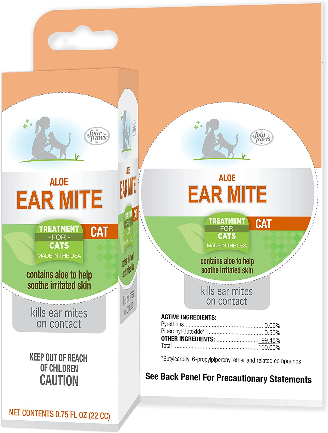 Four Paws Aloe Ear Mite Treatment 0.75 oz Soothing Relief for Cats