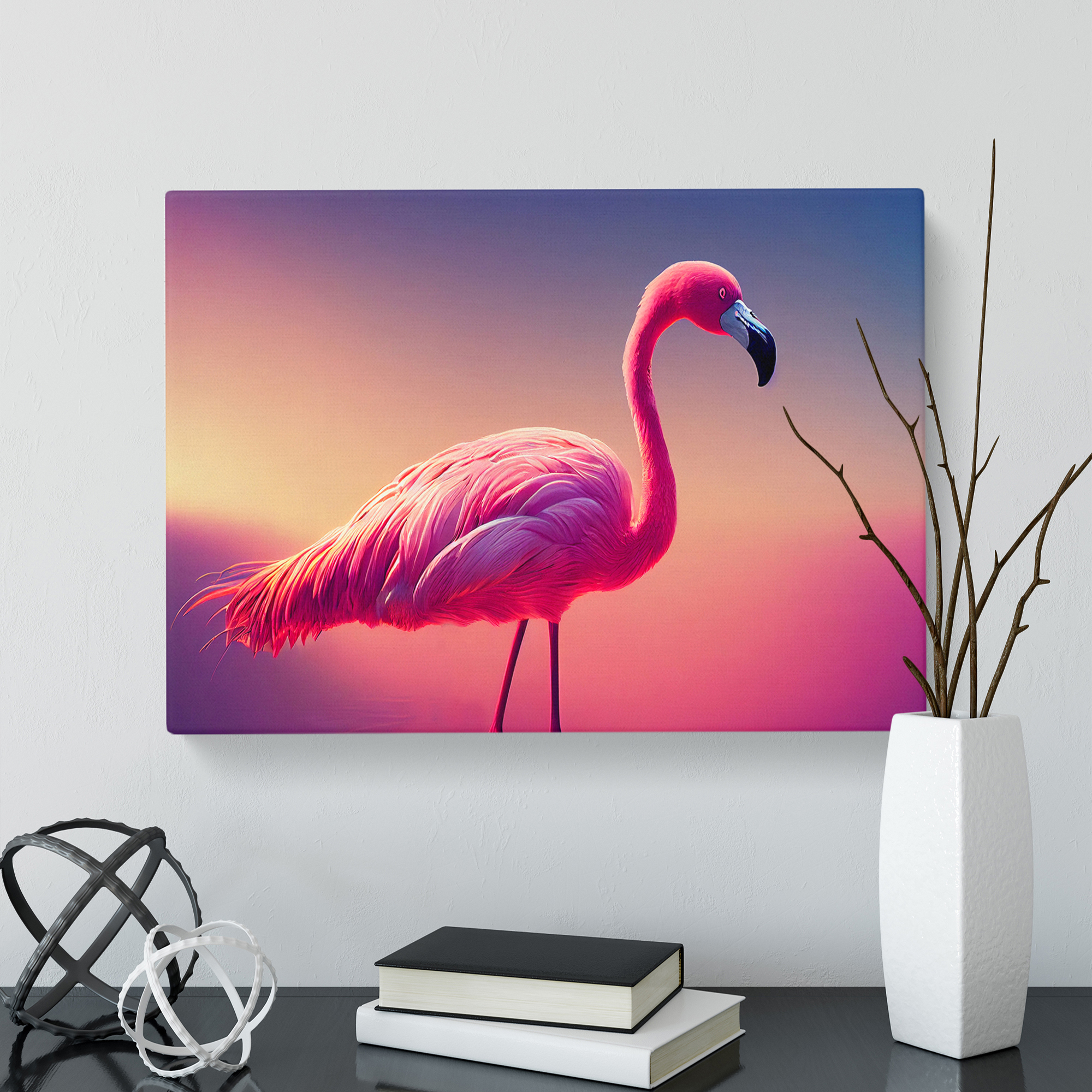 Transform your living space with our framed canvas wall art prints. Designed to elevate your home decor, this stunning picture titled Enviable Flamingo is crafted in the UK, and boasts a contemporary gallery wrapped finish. Utilising high-quality inks and materials, the colours of the wall art print are rich, vibrant, and true to life. The canvas is stretched over a 30mm deep frame creating a stylish wall art picture that is ready to hang in your living room, lounge, bedroom, dining room and home office.