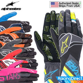 This lightweight sports glove model features a new construction of polyester bonded with polymesh to offer superb levels of durability, comfort, fit and feel, and has internal seams and synthetic suede leather on the palm to allow for excellent levels of comfort, feel and grip. There are also mesh fourchettes on one half of the fingers and lycra on the other half for the perfect blend of ventilation, flexibility and comfort, with a silicon surface treatment on the palm and fingers for improved flexibility and control. It is also equipped Alpinestars open cuff design with a 180° elasticated wrist for easy entry and a secure fit, and a touch compatible print on thumb and index fingers for using mobile devices while at the track.