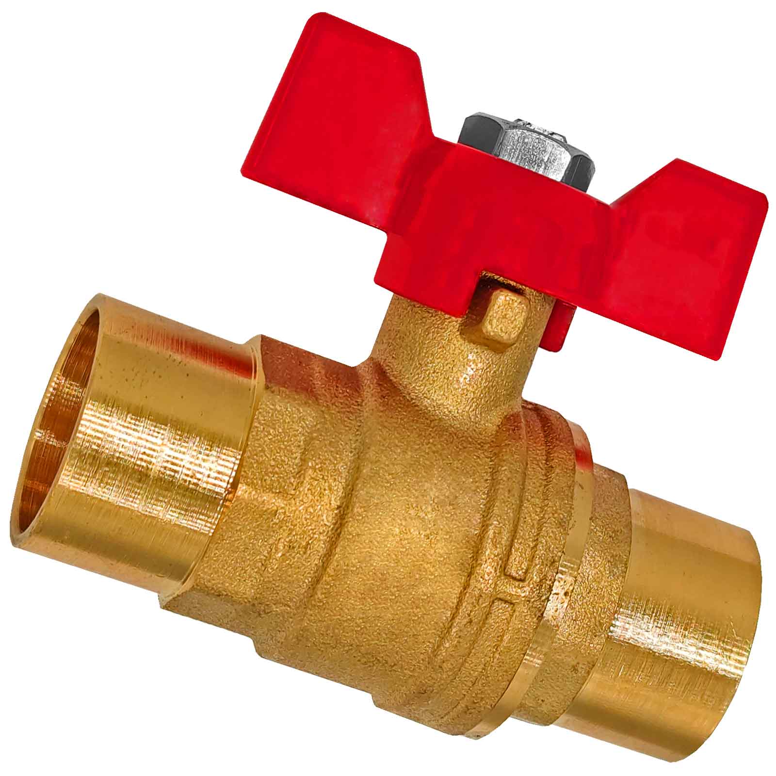 Löt-Fitting aus Messing > Kugelhahn mit Flügelgriff rot (i-i)