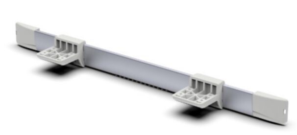 Mito wall mounted sliding table rail. Sliding connection kit for tables in anodized aluminium and plastic components.