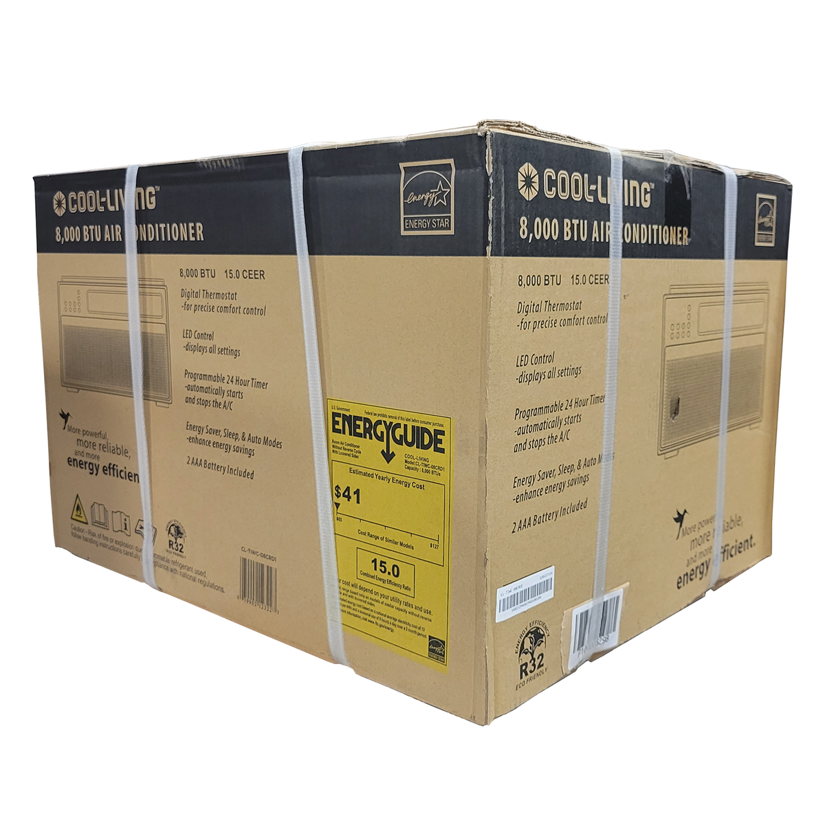 Keep cool with this powerful high-efficiency 8,000-BTU Room Window Air Conditioner by Cool-Living. Energy Star rated, it features a digital thermostat, remote control, programmable 24-hour timer, and multiple cooling and fan modes. A window installation kit is included for vertical-opening windows. Products that are Energy Star-qualified prevent greenhouse gas emissions by meeting strict energy efficiency guidelines set by the U.S. Environmental Protection Agency and the U.S. Department of Energy.