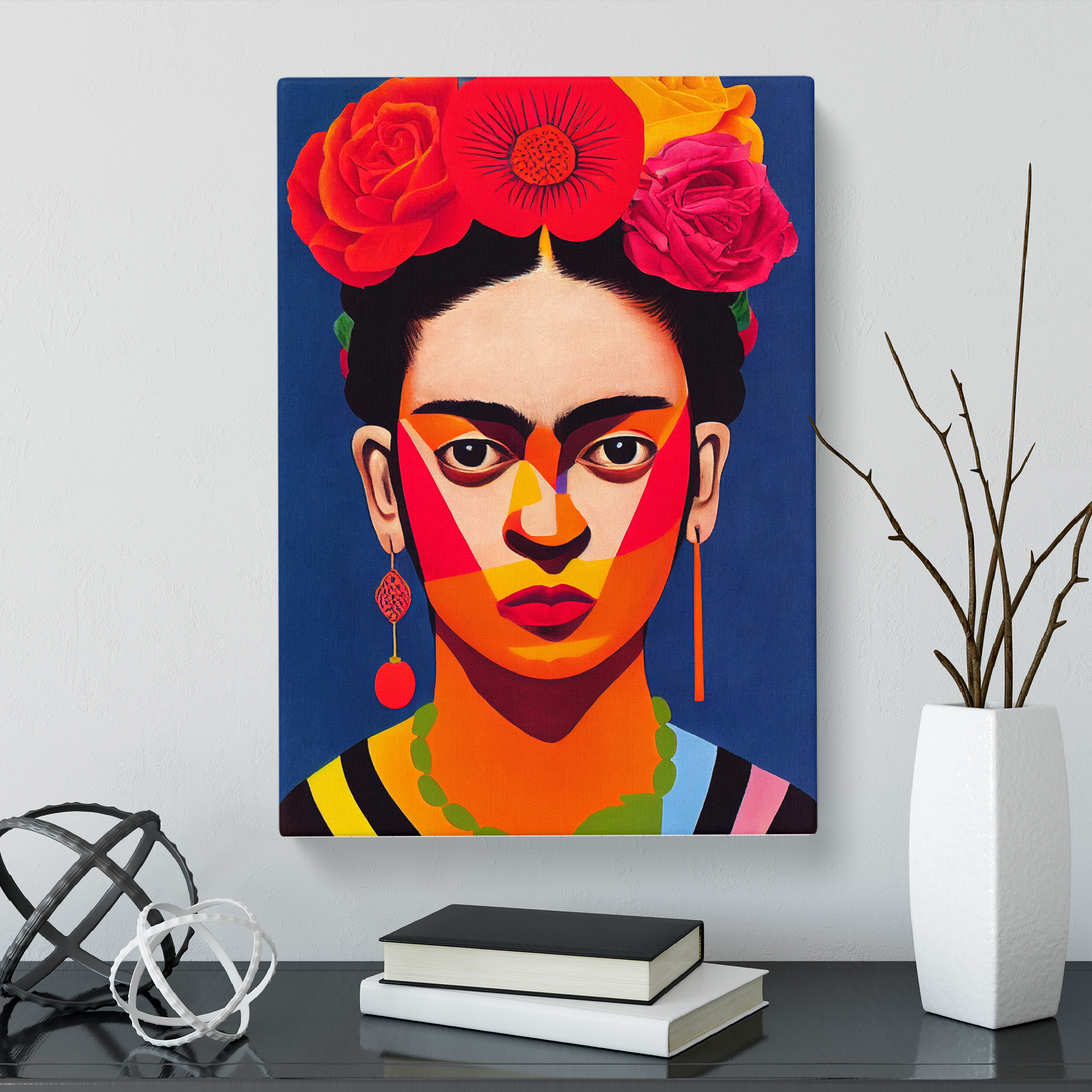 Transform your living space with our framed canvas wall art prints. Designed to elevate your home decor, this stunning picture titled Frida Kahlo Modern Art is crafted in the UK, and boasts a contemporary gallery wrapped finish. Utilising high-quality inks and materials, the colours of the wall art print are rich, vibrant, and true to life. The canvas is stretched over a 30mm deep frame creating a stylish wall art picture that is ready to hang in your living room, lounge, bedroom, dining room and home office.