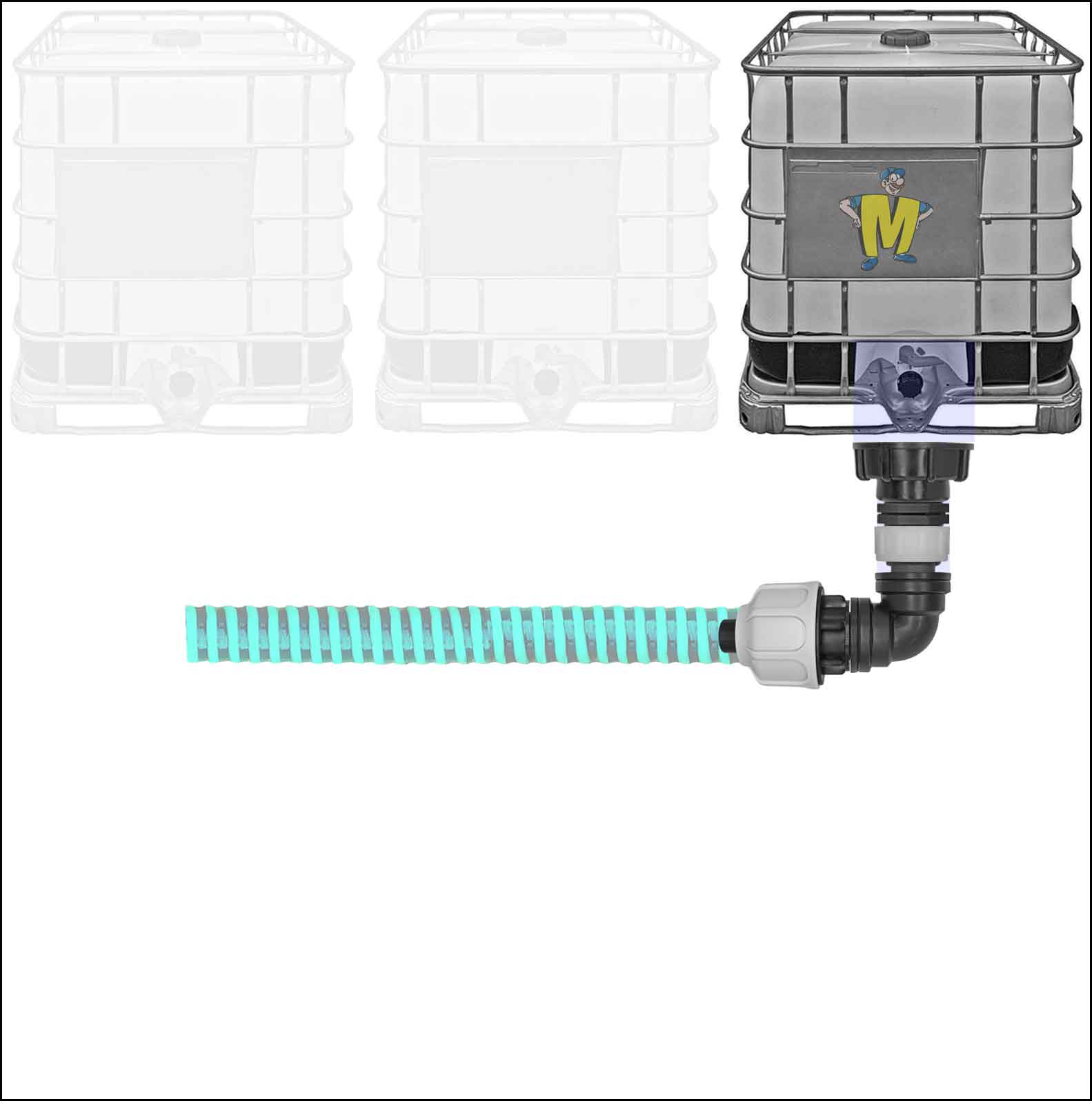 IBC auf Spiralschlauch Winkel (Endstück) + Abgang nach oben, unten, davor oder dahinter