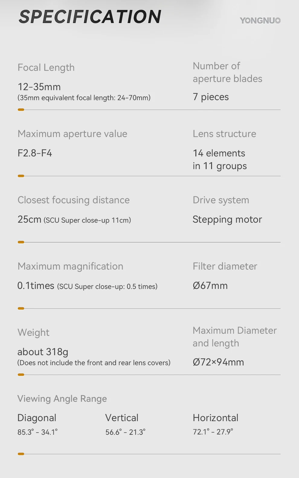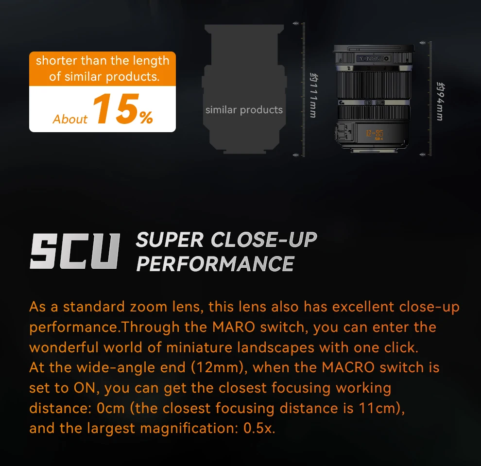 Yongnuo YN12-35mm F2.8-4M Auto Focus Zoom Macro Lens for M4/3 M43 Mount Cameras