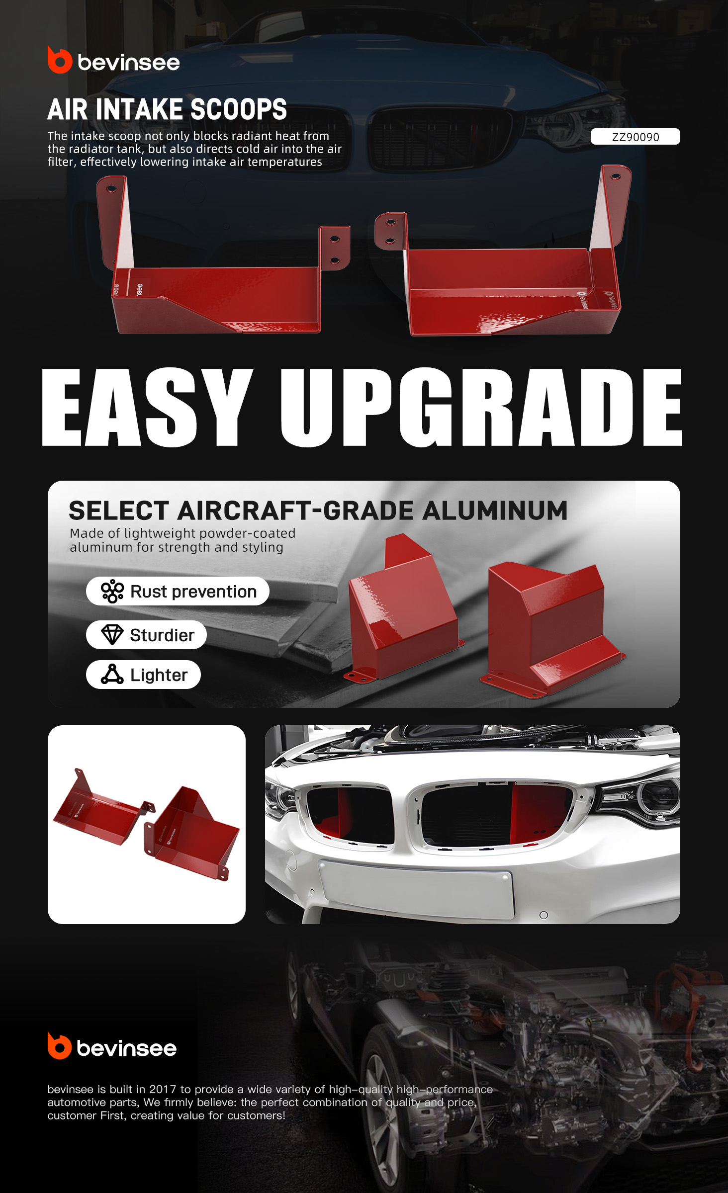 【Aircraft-grade Aluminum】Made of lightweight powder-coated aluminum for strength and styling. Don't choose plastic or stamped air intake scoops, they can easily melt from the heat or smell bad.