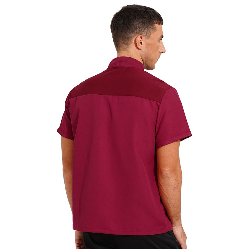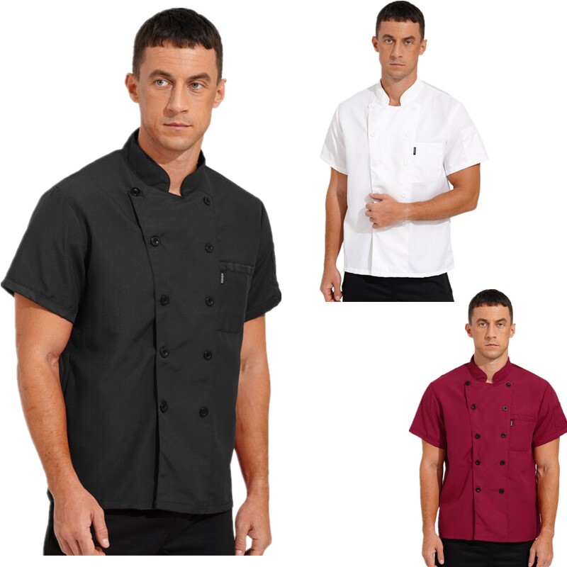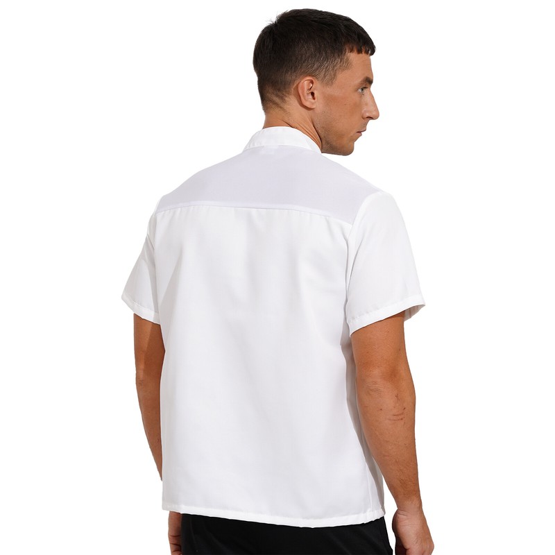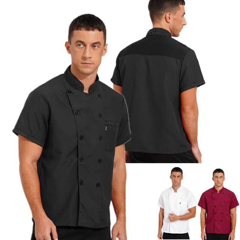 Mens Womens Short Sleeve Stand Collar Chef Coat Canteen Restaurant Hotel Cook Uniform Button Work Shirt.