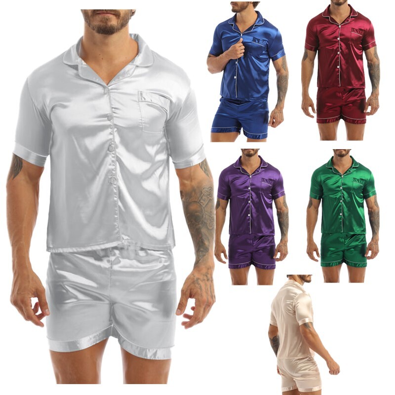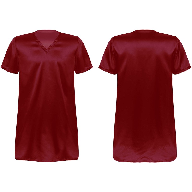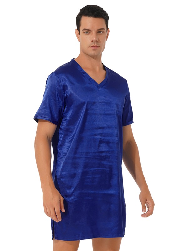 Unisex V Neck Short Sleeve Sides Split Nightwear.