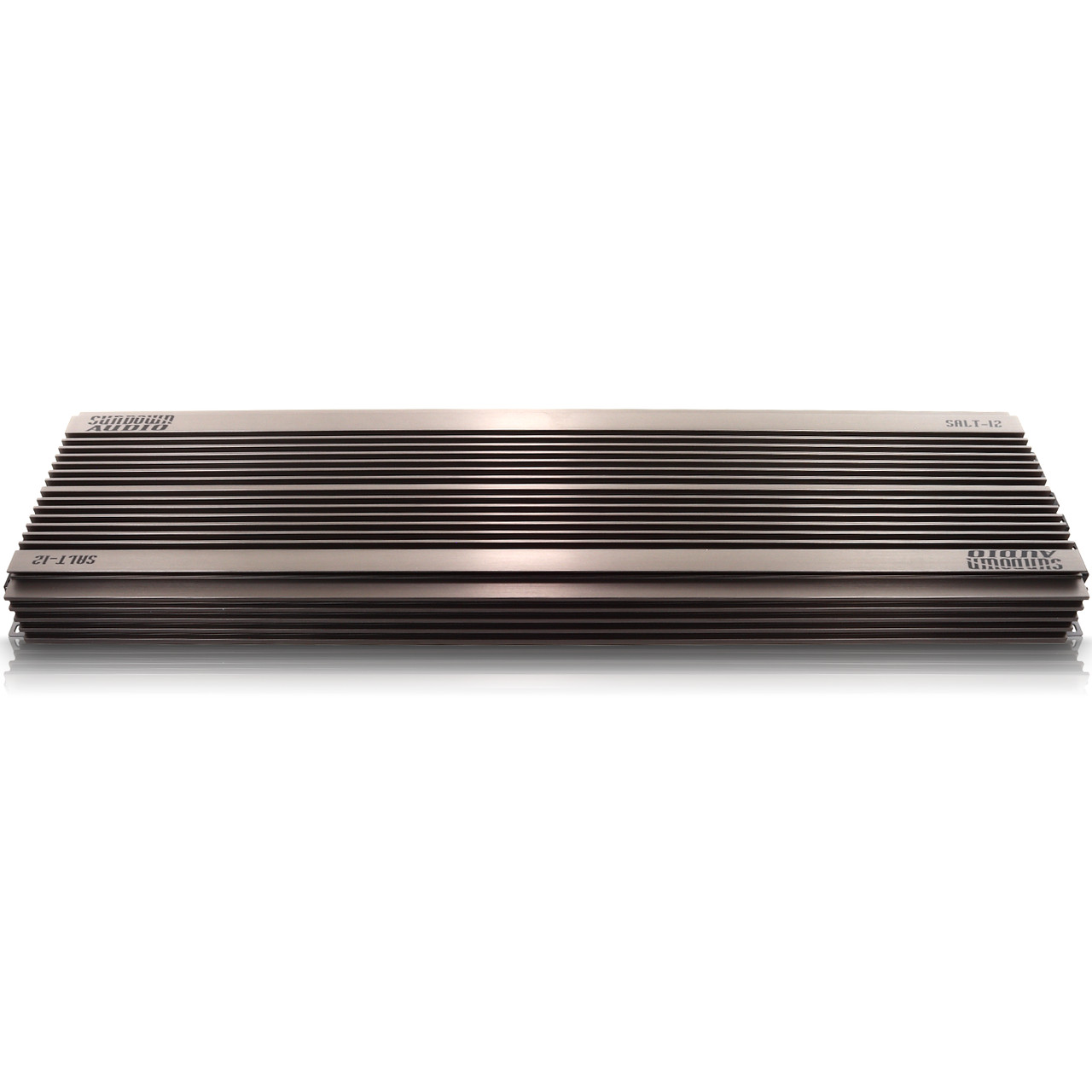 Sundown Audio - SALT-12 Amplifier The Sundown Audio SALT amplifiers represent the pinnacle of Korean Class-D amplifier technology. They stand on the shoulders of the previous three generations of Sundown high-end Korean amplifiers spanning 15-years (the SAZ v.1, SAZ, v.2, and SCV series) to reach even greater heights of performance. Our customers, for many years, have asked us to produce amplifiers that produce optimum power at realistic operating voltages in the 12s rather than 14+ volts. The SALT – Sundown Audio Low-Voltage Technology – series is our answer! Whether you are a world-class SPL competitor, a dedicated enthusiast, or even a fan of Sound Quality the SALT series will be right at home in your system. Each and every model has been created with painstaking attention to detail to ensure that they bring a smile to your face each time the music starts playing and, further, to last for many years to come. Cosmetically they are a huge departure from our original styling as an outward indicator of the enhanced levels of performance. The heat-sink is the heaviest we have ever produced, with the most surface area, and is finished with a striking titanium color. These amplifier looks as good as they sound and as soon as you hold one in your hands the build-quality is obvious. The icing on the cake lies in the revised remote control which features temperature, voltage, and clipping indicators to easily monitor the vitals of your valuable audio system. Features Digital Class-D Linkable Mono Block Amplifier Dual MOS-FET PWM Power Supply 1 Ohm Stable Load 24 dB/Octave – Variable Low Pass Filter 24 dB/Octave – Variable Subsonic Filter 9 dB/Octave – Variable Bass Boost 180° Variable Phase Shift 4 Way Protection Ciruit (Thermal, Voltage, Speaker Short, DC Offset) Wired Remote Control with Voltage & Temperature Display and Clipping Indicator Not Strappable Specifications Input Sensitivity : 6V - 0.2V 12000 x 1 @ 1 ohms RMS Mono 6000 x 1 @ 2 ohms RMS Mono 3000 x 1 @ 4 ohms RMS Mono Variable Subsonic Crossover Filter : 10HZ - 50HZ Variable Low Pass Filter : 35HZ - 250HZ Bass Boost @ 45Hz 0-9dB Efficiency : 90% < Signal / Noise Ratio : 90DB < Damping Factor : 400 < Frequency Response : 10 Hz – 250 HZ Phase Shift Control 0-180 Degrees Tested Voltage & THD : 12.8V & Less Than 1% THD Operation Voltage : DC 9V - 15.5V Power Input Recommended Fuse : 2000 Amps Dimensions : 37.80” L x 10.08” W x 2.96” H PRODUCT MANUAL