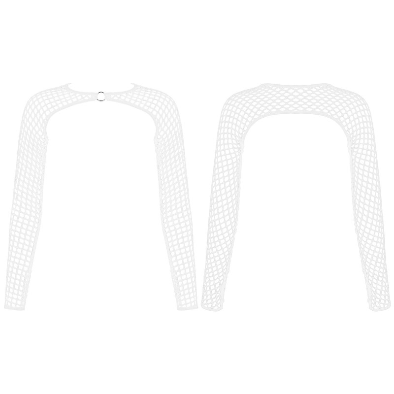 Womens Hollow Out Fishnet Crop Top Cover Ups O Ring Long Sleeve T-shirt.