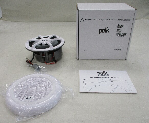I am selling a Polk Ultramarine 7.7" White Coaxial Speaker, part # UMS77W. This is new and in the original packaging, only opened for photos. This speaker is constructed out of glossy white plastic and cast aluminum. This is called a 7.7" speaker from the manufacturer but when measured it roughly measures 7 1/2" in diameter X 4" in height overall. This mounts with (6) 1/8" dia mounting holes and connects by a (2) spade female and (1) 6-pin Deutsch. Per the manufacturer this features; 7.7" waterproof speaker, 200 watts maximum power, corrosion and UV resistant, free air design, cast aluminum basket, high temperature voice coil, snap-on grille installation option, silver cone, insulated tinsel leads, titanium dome tweeter, 25.6 oz magnet, 90.2 dB sensitivity, 70 Hz- 20kHz frequency response and a 3.03" mounting depth. For more information regarding this item contact a dealer in your area. (AP / 136 C / 9100027) (4) / LH