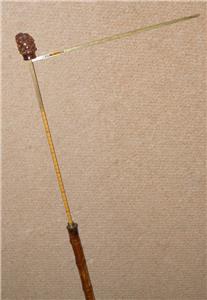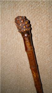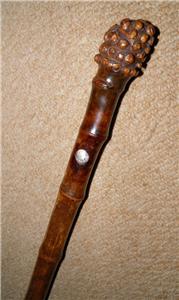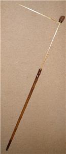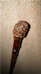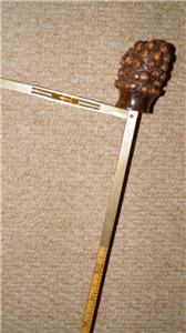 This walking stick features a root ball top which pulls up to reveal a brass horse measure, that measures up to 17HH.