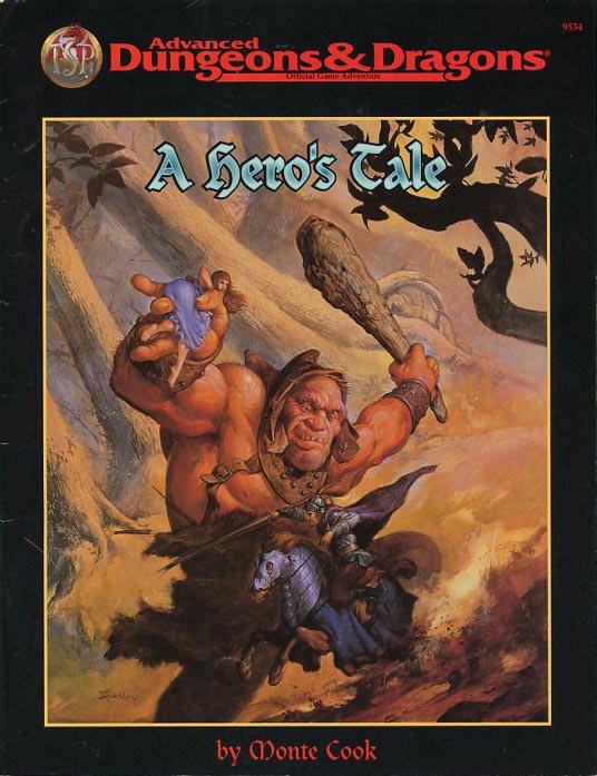 For sale is the Advanced Dungeons & Dragons adventure module A Hero's Tale. It was produced by TSR in 1996, written by Monte Cook (of Planescape fame) and features 64-pages of adventure for characters levels 1 - 10. See the second photo provided for an excerpt from the reverse cover for more detail.