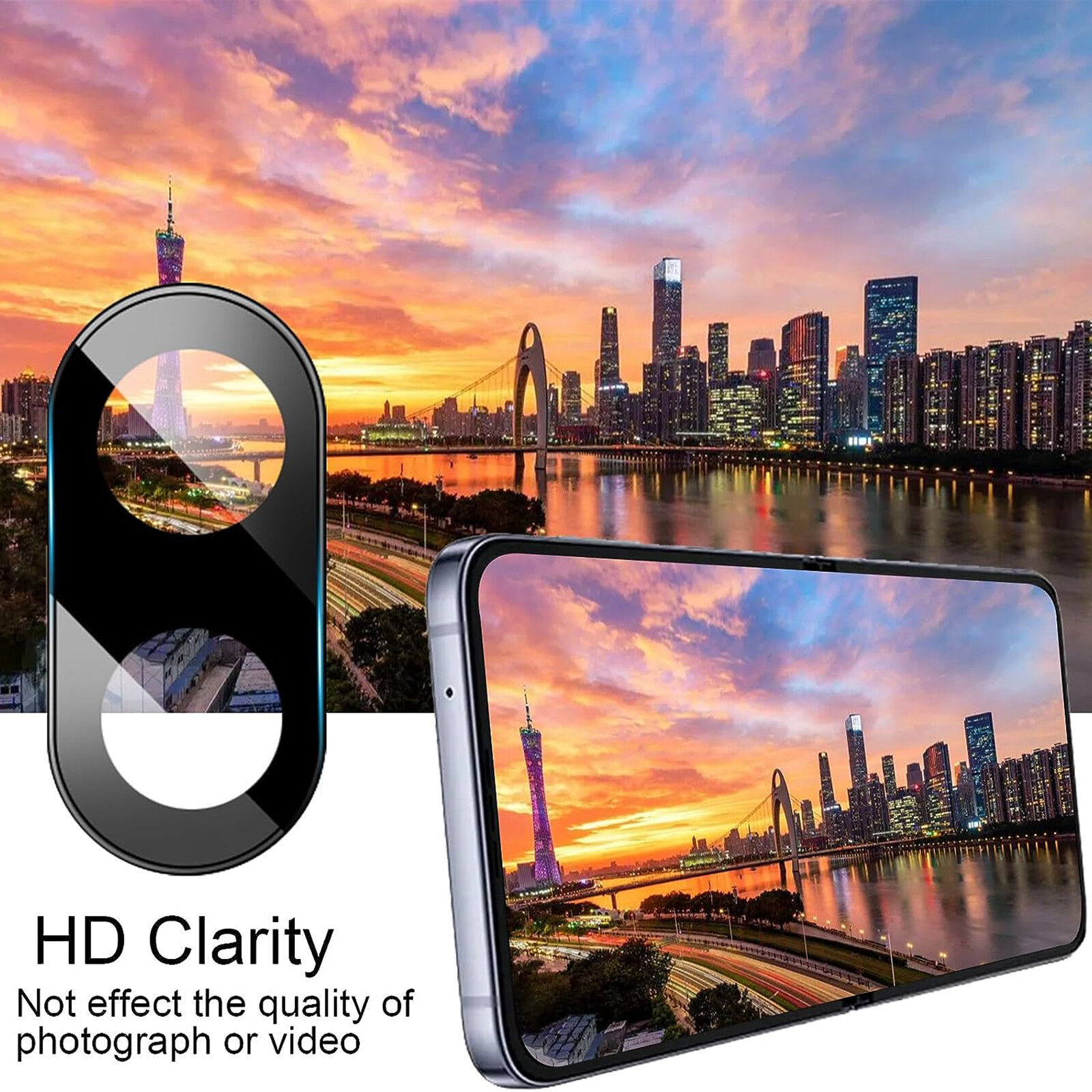3.Front glass screen protector + camera cover for Samsung Galalxy Z Flip 5 use nano electrostatic adsorption technology, easy installation, not easy to fall off. 9-level of hardness glass effectively protect entire camera lens from drops, scratches and other accidents.
