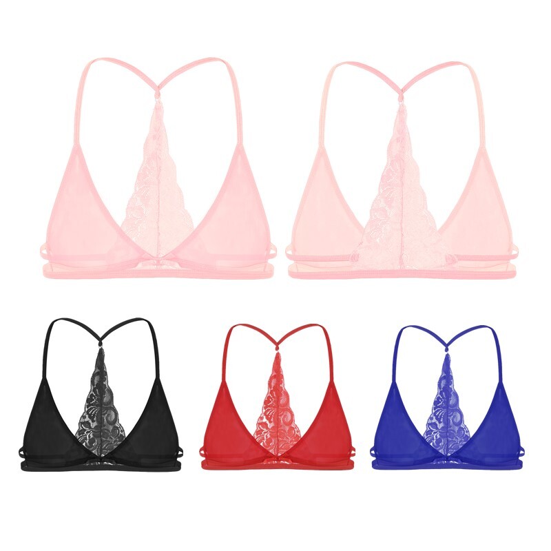 US Mens Sissy Sheer Bralette Lace Wire-Free Unlined Bra Crossdressing Lingerie