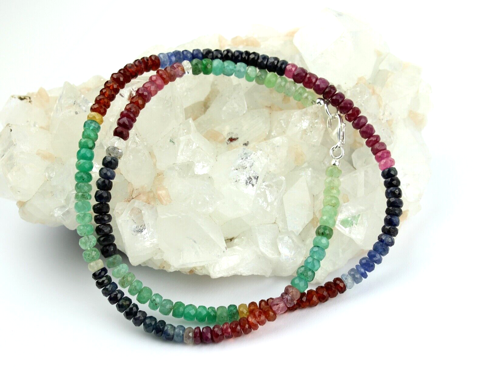 Bella Natura Ruby-Sapphire Emerald Chain con 925 Carabiner d'argento