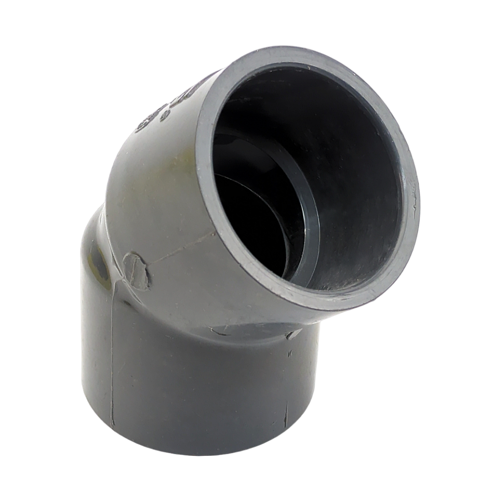 Gray 2” Socket SCH 80/XH Molded Standard PVC 45° Elbow Fitting with Divett 2”