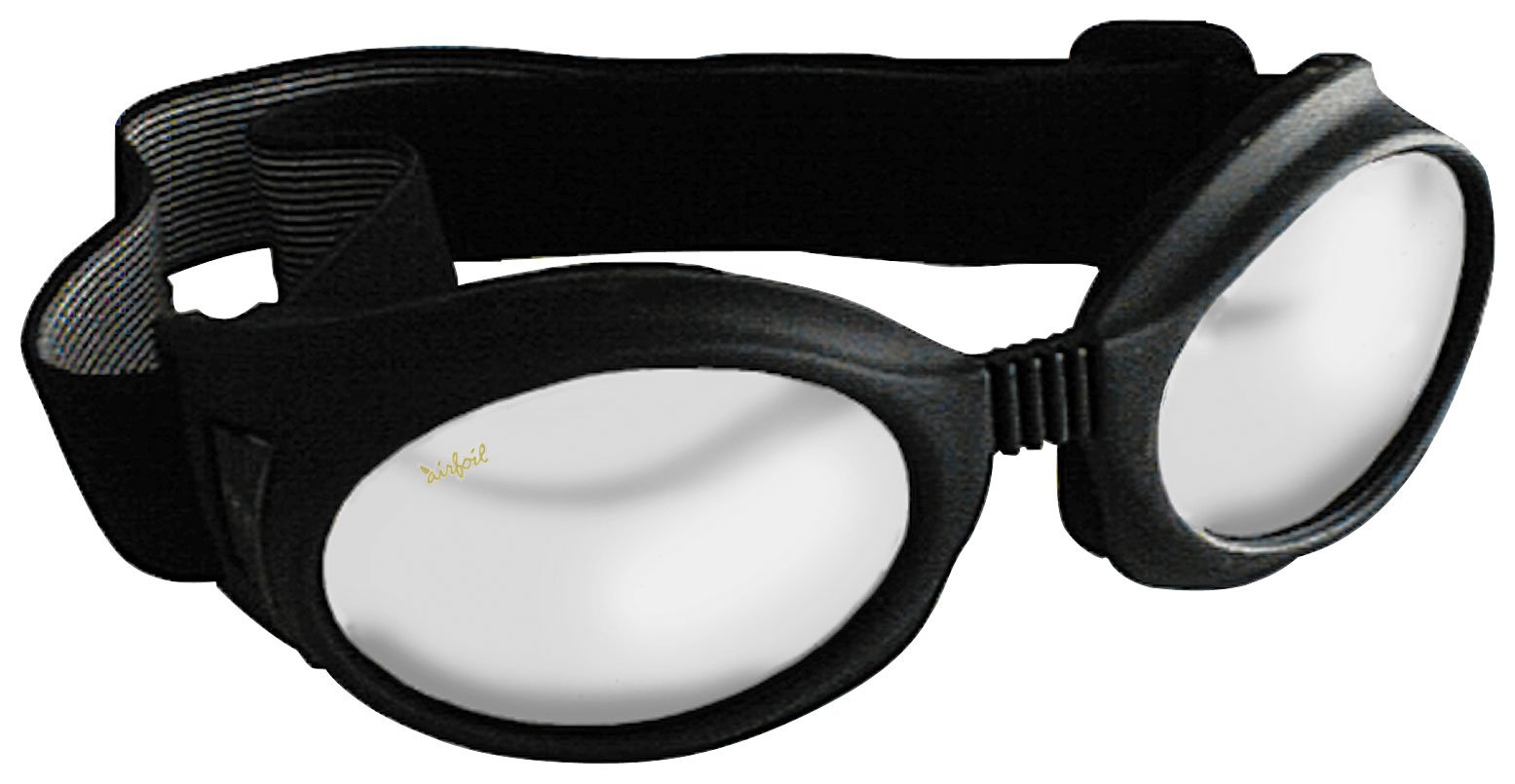 Pacific Coast Sunglasses Airfoil 7600 series, with a black frames and clear lenses. Great for motorcycle riding.