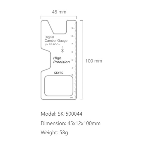 With the SkyRC digital camber gauge, both camber and toe angle of a 1/8 RC car can be measured and the data sent directly to Your smartphone via Bluetooth connection. All you need is the free app "RC Gears" in order to finally start fine-tuning the wheels like a pro!